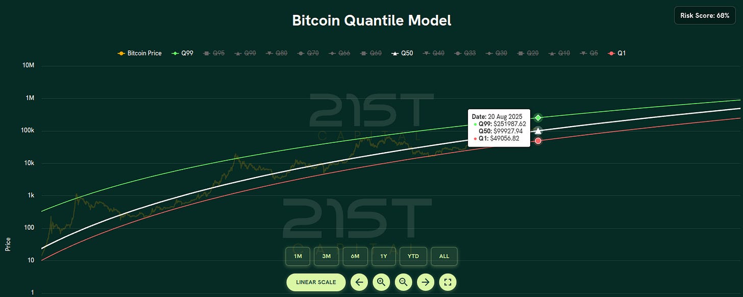 Zooming out a little, I still believe we’re just a bit above the power law or trend line. This chart is from 21st Capital’s BI dashboard: