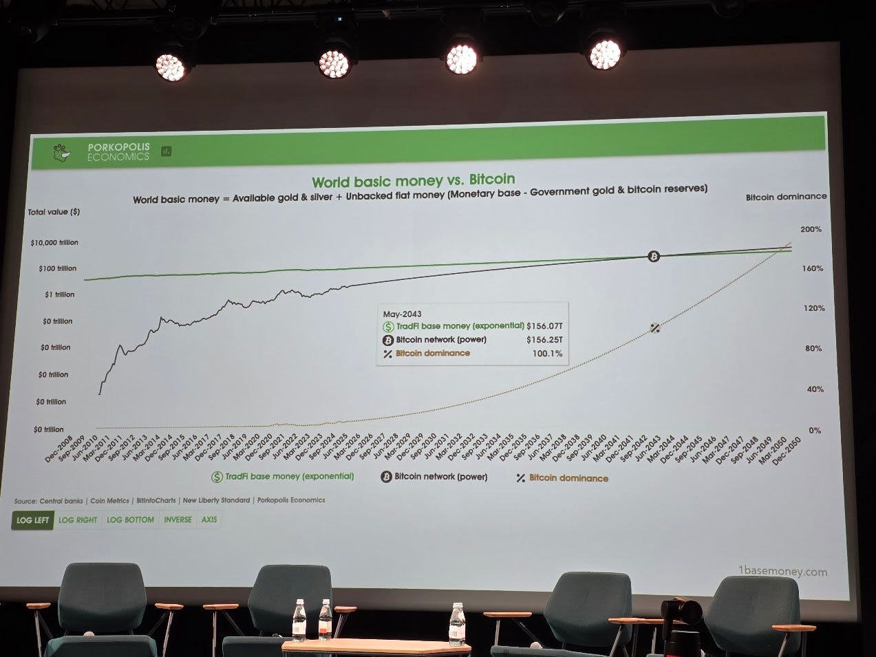 See Matthew’s chart here showing the ‘crossover point’ where bitcoin network is projected to meet the TradFi base money number - around 2043 or so. Things will get very interesting in that 2040s decade!