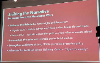 Even here, there were some debates about the overly bureaucratic and onerous regulatory direction the EU is going down. For example, some of the new EU rules are hindering true bitcoin innovation that enables better self custody, as rules tend to be written around existing (and custodial solutions). Sometimes government bureaucrats, politicians and those working in legal consultancy don’t seem to grasp that they are in competition with other jurisdictions around the world - which can sometimes cause them to ‘rest on their laurels’ and/or fallback to the “we have men with guns” type arguments.